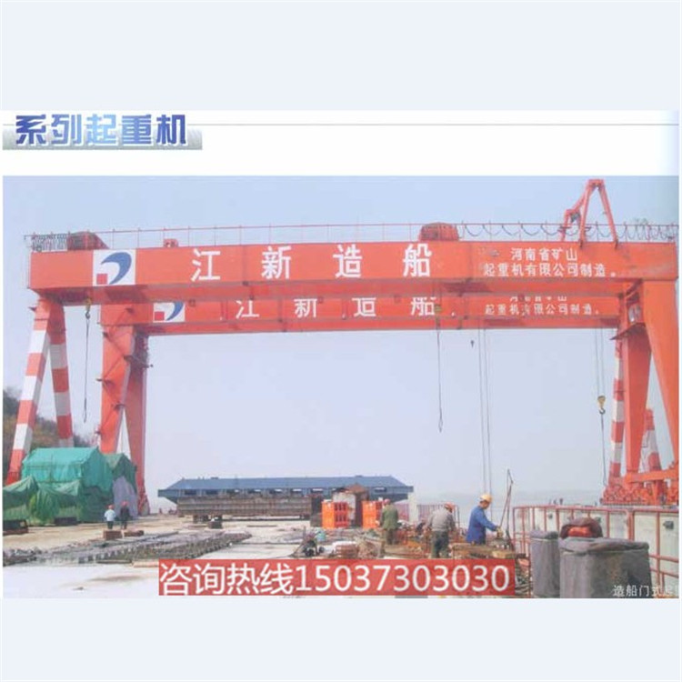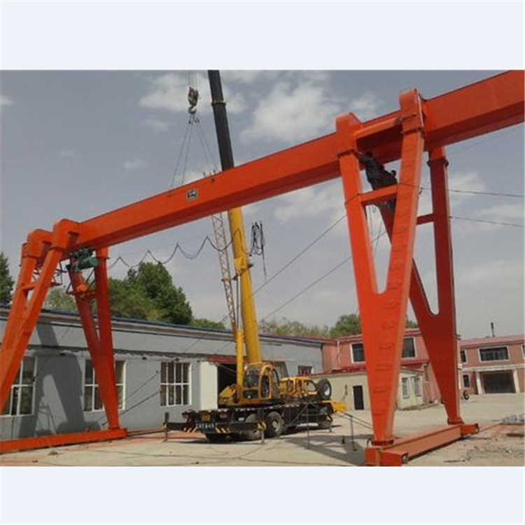 它的金屬結(jié)構(gòu)像門形框架,承載主梁下安裝兩條支腳,可以直接在地面的軌道上行走,主梁兩端可以具有外伸懸臂梁。