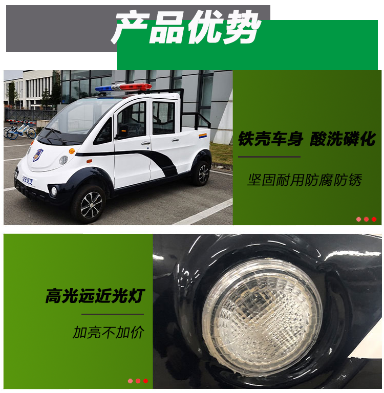 鈑金沖壓車身,優(yōu)化防銹烤漆處理,模塊化結(jié)構(gòu)設(shè)計(jì)便于維修,強(qiáng)度高,更堅(jiān)固,美觀耐用﹑重量輕等優(yōu)越性成都瑞詩城電動(dòng)車廠家 電動(dòng)巡邏車