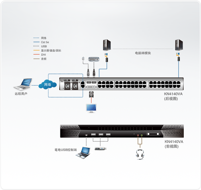 高視頻分辨率- 服務器與KVM 多電腦切換器之間距離遠達50 米時,本地控制端視頻分辨率高可達1920x1200@60Hz,24 位色深;遠程視頻分辨率高可達1920x1200@60Hz,24 位色深