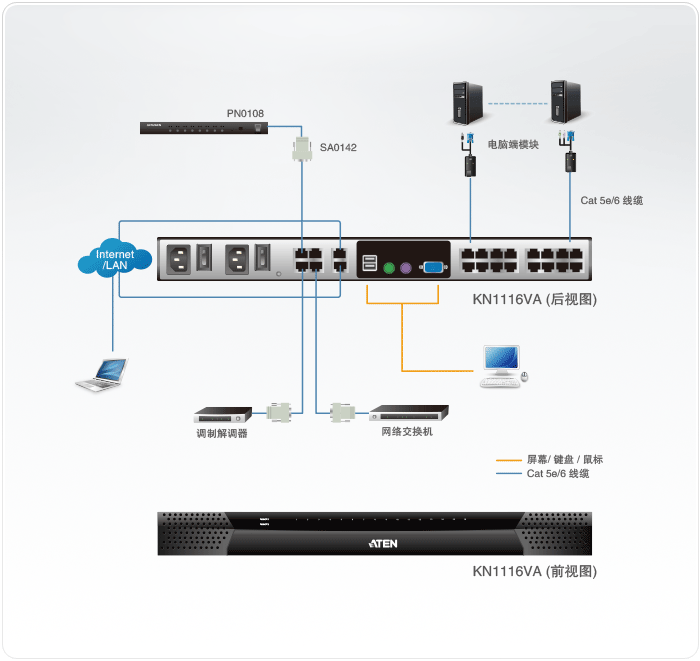 支持PS/2、USB、Sun Legacy(13W3)及串口(RS-232)連接