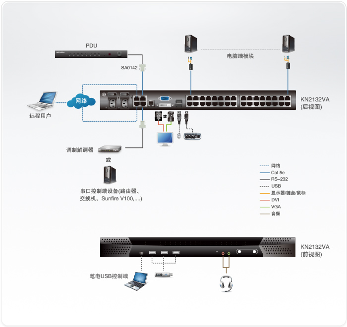 支持PS/2、USB、Sun Legacy(13W3) 及串口(RS-232) 連接