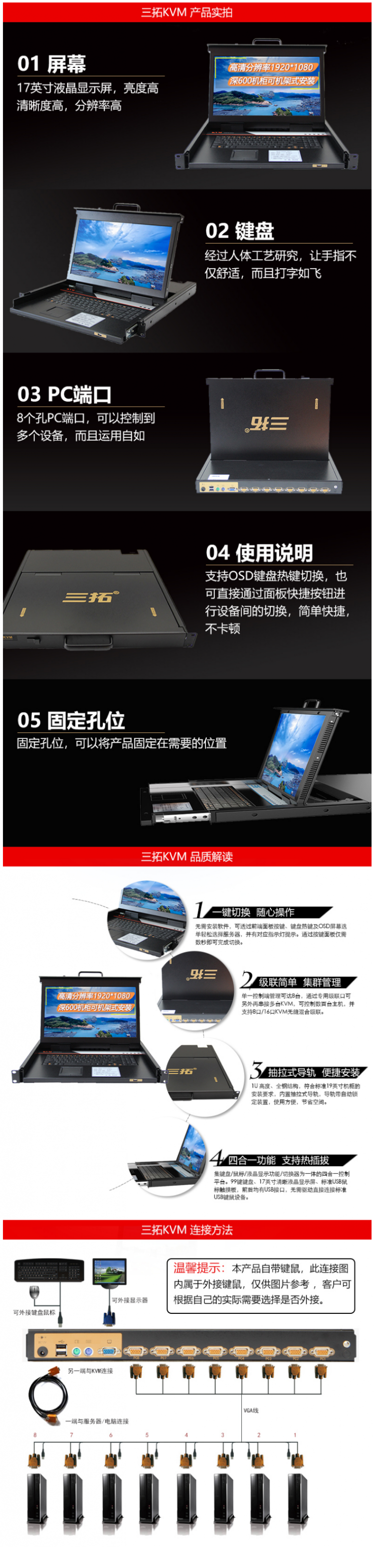 三拓 四川成都 總代理 KVM切換器 8口17英寸高清寬屏1920*1080PX適用600深機(jī)柜含13%票 TL-1704GK 17英寸4口高清