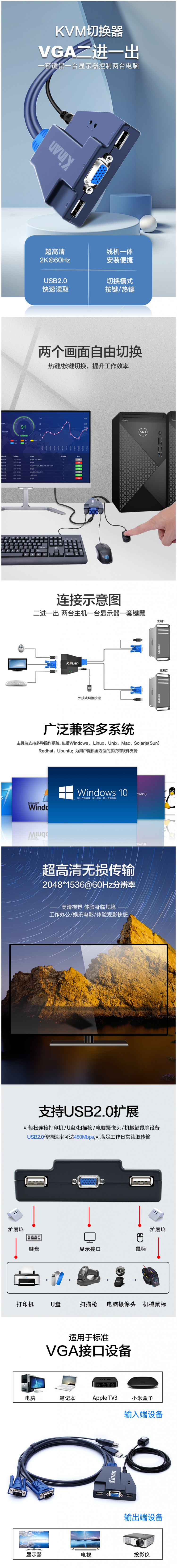 秦安Kinan 四川 成都 總代理 KVM切換器 2口VGA二進(jìn)一出 USB打印機(jī)共享器熱鍵按鍵線切換 KA1302