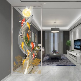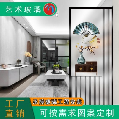 輕奢藝術(shù)玻璃屏風(fēng)隔斷客廳遮擋臥室家用入戶玄關(guān)磨砂透光簡約裝飾