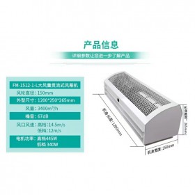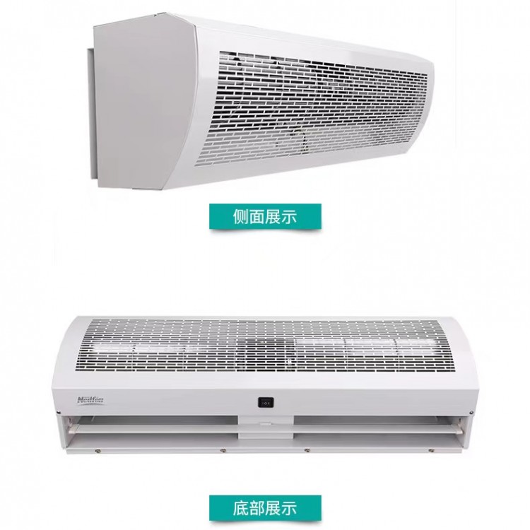 貫流式風幕機:只有一個電機,風幕機主要是以電機帶動風輪轉動,形成一道無形的風門來隔斷室內的冷暖氣,避免冷暖氣的流失;主要裝在超市、步行街、商場、飯店、廚房等噪音要求不高的場所。