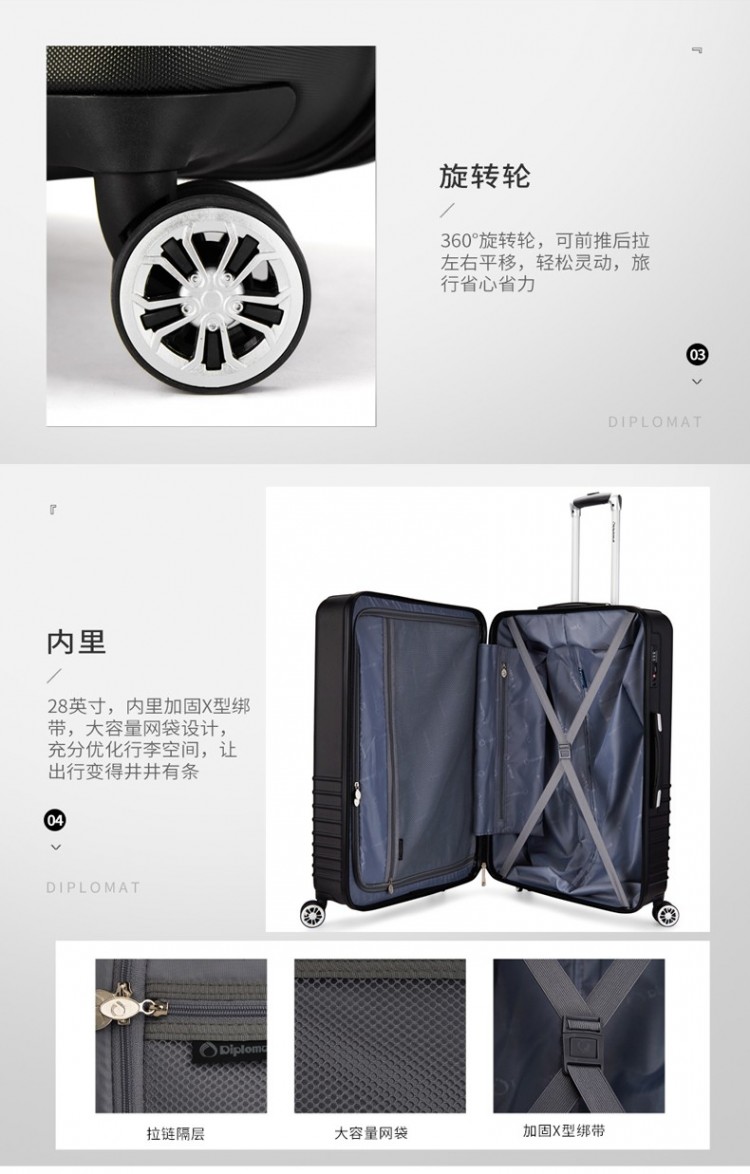 4.360°旋轉(zhuǎn)飛機(jī)輪,可前推后拉左右平移,輕松靈動(dòng),旅行省心省力;