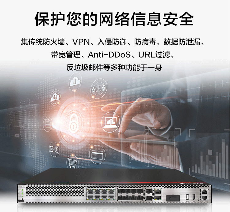 一體化防護(hù): 防火墻、VPN、入侵防御、防病毒、數(shù)據(jù)防泄漏、帶寬管理