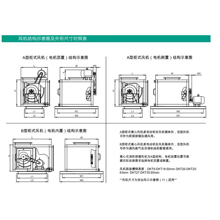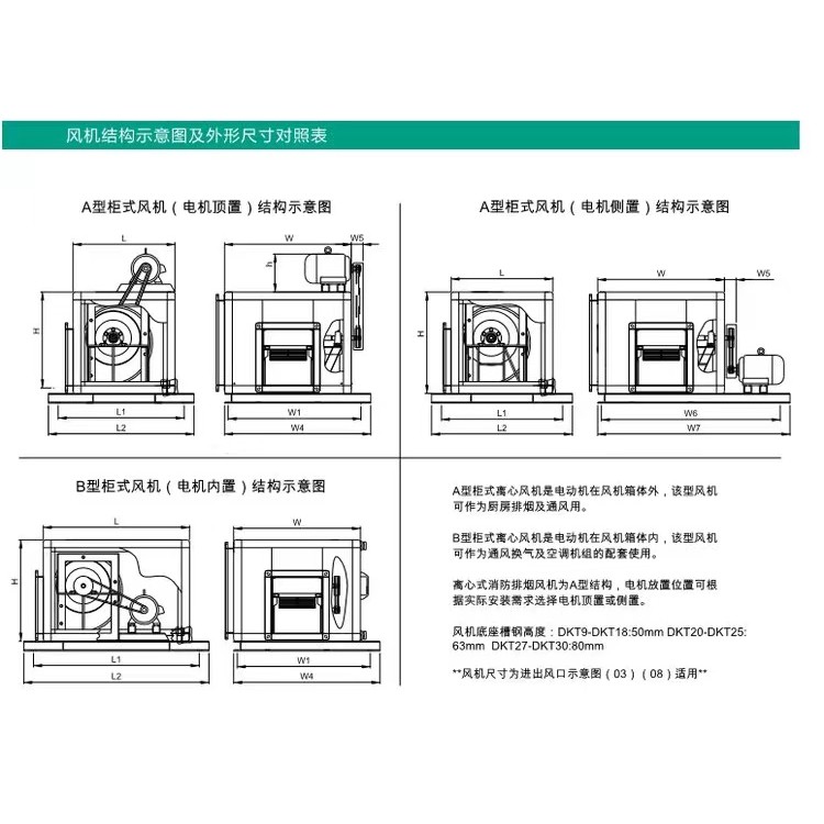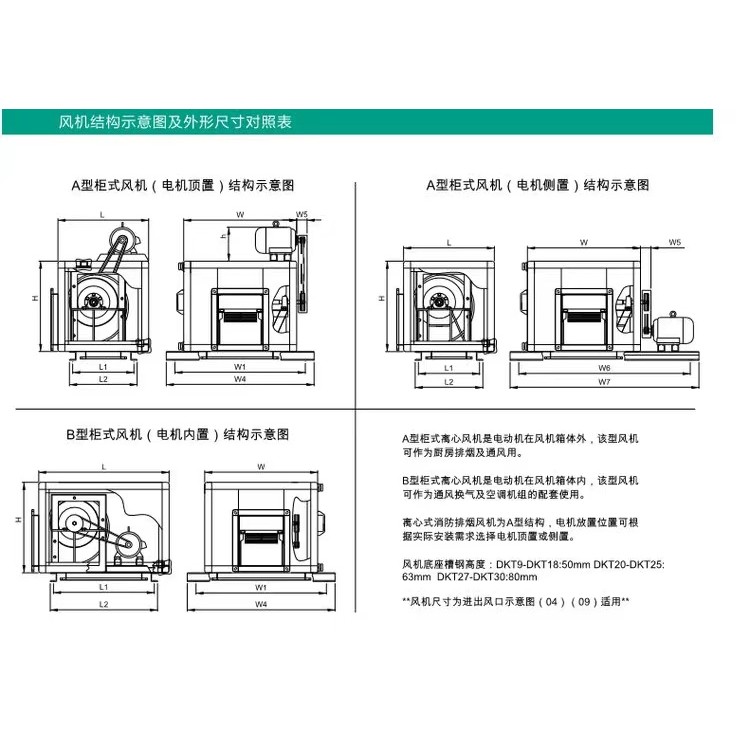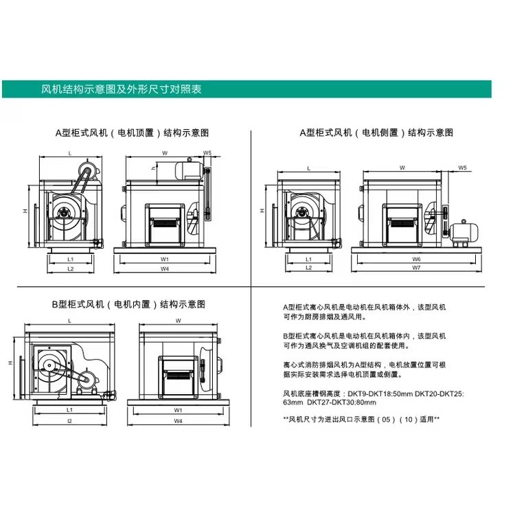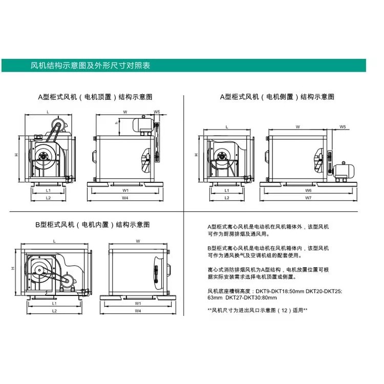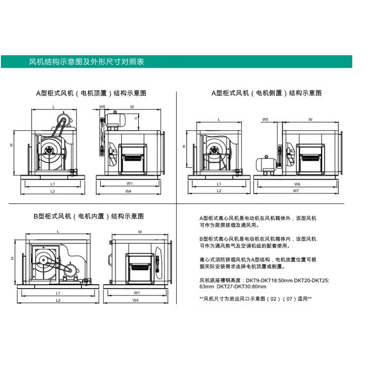 產(chǎn)品目前擁有DKT(9/10\12\15\18\20\22\25\27\30)等多種型號,且同一型號均有A型(電機外置)和B型(電機內(nèi)置)兩大類,可滿足不同場所和不同用途之要求。