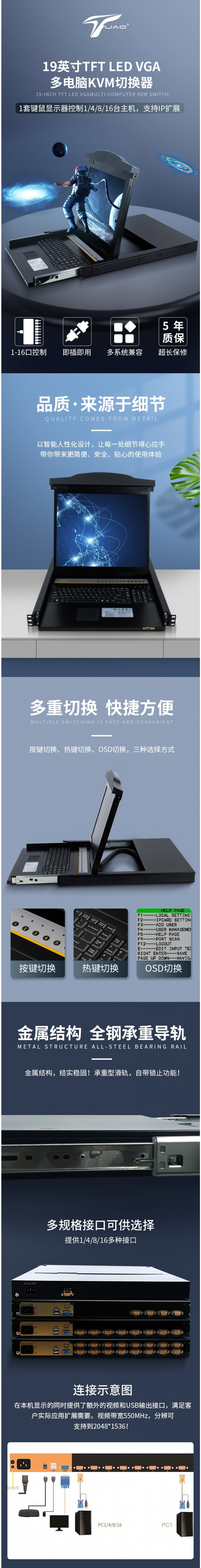 TUAO圖奧 四川成都總代理 kvm切換器19寸8口16口vga機(jī)柜顯示器服務(wù)器鍵盤鼠標(biāo)折疊機(jī)架式4路進(jìn)1出操作臺 TX-5901U(19寸1口VGA)