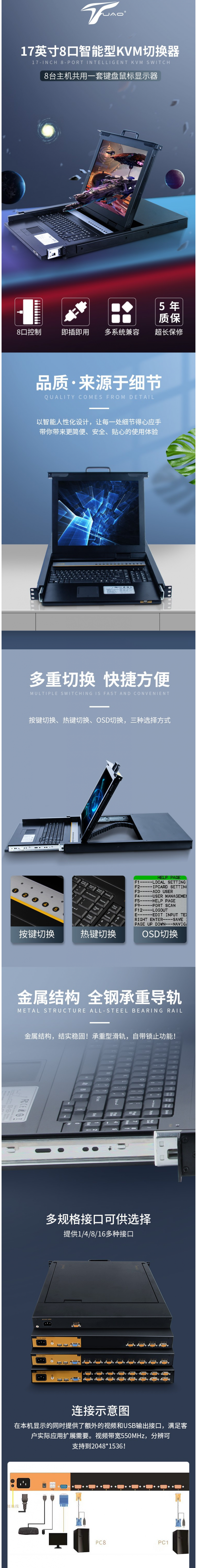 圖奧 四川成都總代理 KVM切換器機(jī)架式17英寸高清VGA接口數(shù)字IP遠(yuǎn)程訪問4口8口16口鍵盤鼠標(biāo)共享切換器 TX-1701U (17寸1口VGA)