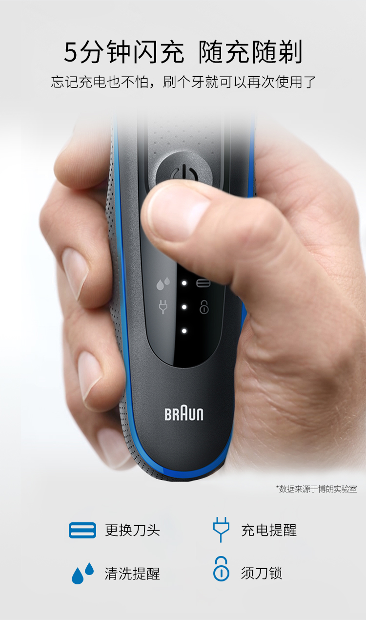 3項靈動剃須原件,三個修剪原件獨立浮動,自動調(diào)整剃須角度