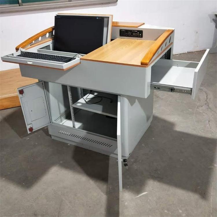 高端多媒體教學(xué) HLZ-SW11鋼制講臺(tái) 講桌學(xué)校中控桌多功能教室