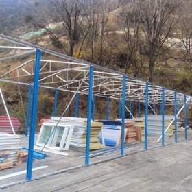 主要材質(zhì): 輕鋼結(jié)構(gòu)為骨架以彩鋼夾心板為墻