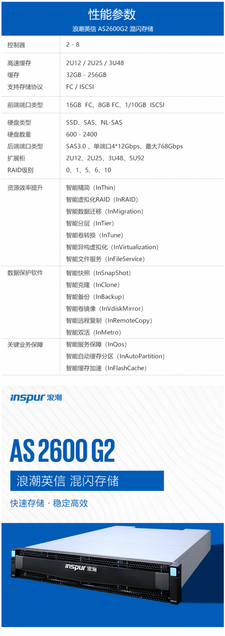 浪潮INSPUR 四川代理 AS2600G2磁盤陣列(雙控/32G緩存/8個(gè)千兆接口/4T*4/雙電/三年服務(wù))