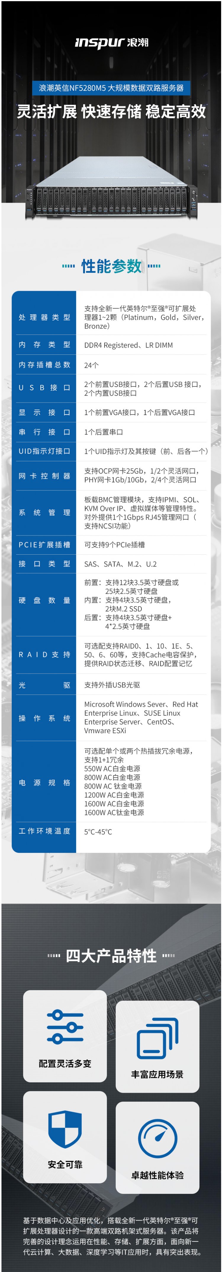 浪潮INSPUR 四川成都代理 NF5280M5機架式服務(wù)器(2*4210 10核 2.2GHz/64G/4T*3 SATA/雙千兆*1/RAID卡/雙電550W/3年服務(wù))
