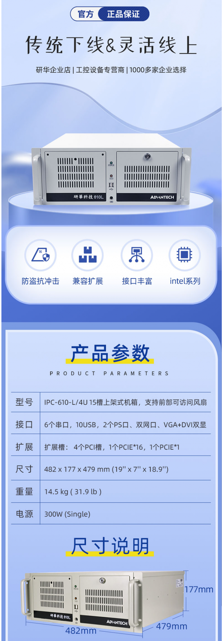 研華智星代理 工控機(jī)研華IPC-610L原裝酷睿4代上架式4U全新主機(jī)611 610H工業(yè)電腦