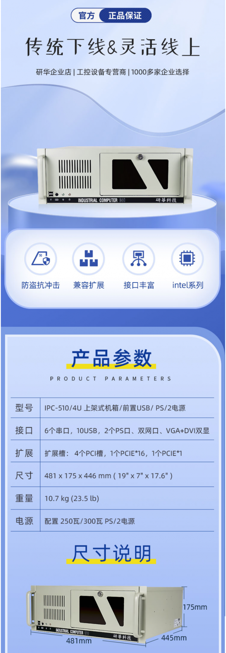 研華智星 四川代理 工控機IPC-510上架式4U主機研華原裝全新工業(yè)主板臺式主機工作站 智星4代主板/I5CPU/8G/1T HHD