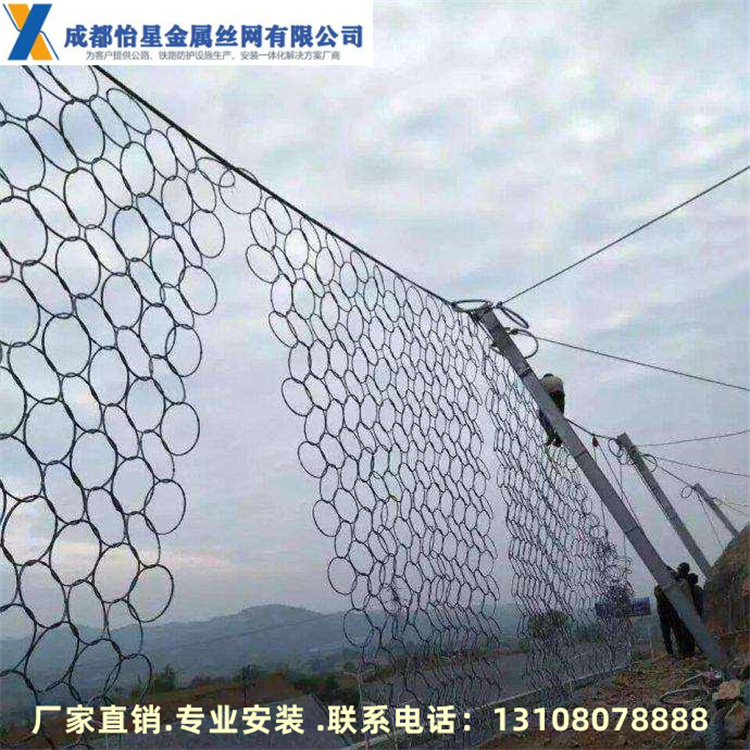 功了在落石沖擊過(guò)程中能發(fā)生自身幾何形態(tài)改變、具有更為突出柔性特征的環(huán)形網(wǎng)來(lái)取代鋼絲繩網(wǎng),以此為基礎(chǔ)的攔石網(wǎng)