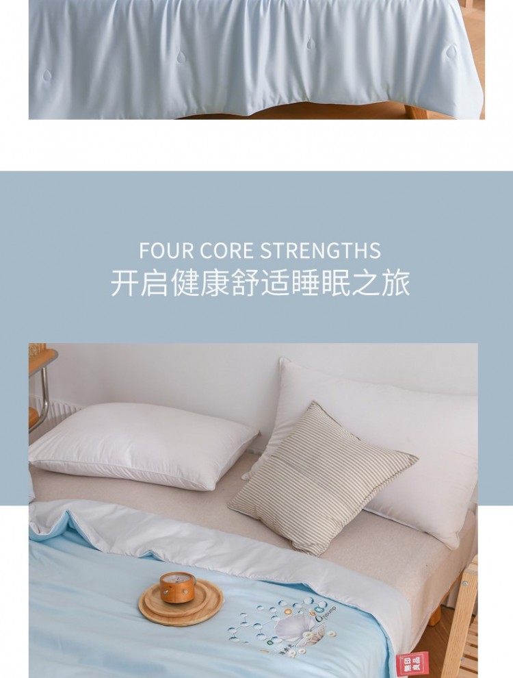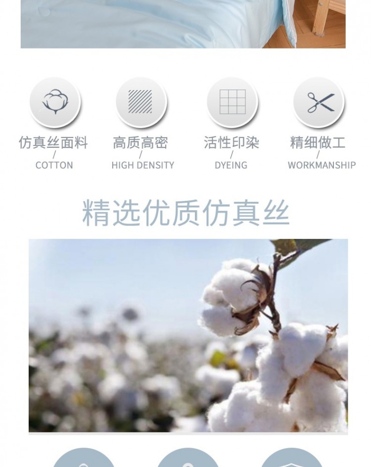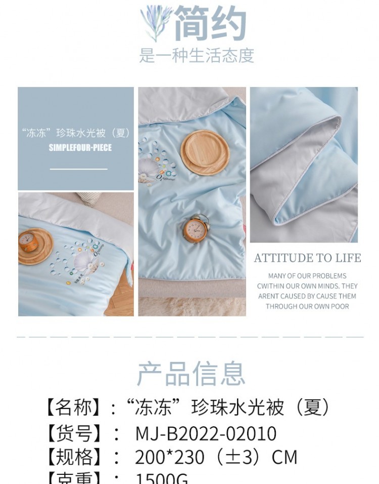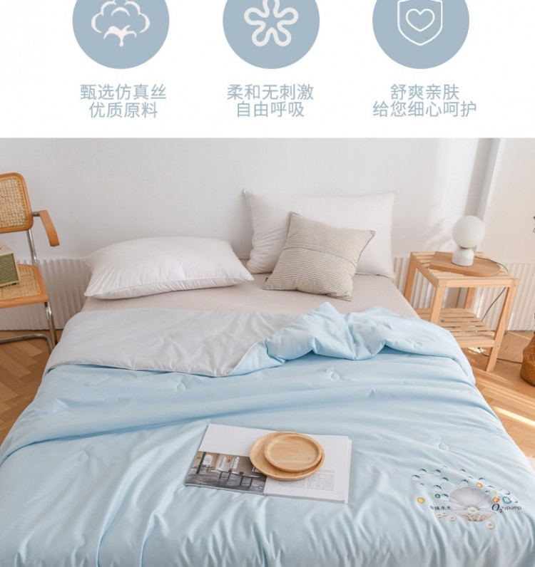 1:仿真絲面料的順滑,垂墜感,讓夏日的心情更舒暢,使用更絲滑。讓被子擁有珍珠般高貴。
