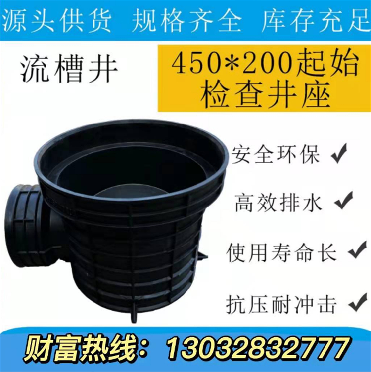 塑料一體注塑檢查井是指構(gòu)成檢查井的主要井座部分采用一次性注塑成型,井筒插口采用360度環(huán)型承載平臺(tái),井身及井座底部采用網(wǎng)狀加強(qiáng)筋,各承插口采用環(huán)型加強(qiáng)筋設(shè)計(jì)。根據(jù)接管數(shù)和角度不同有起始井座、直通井座、45度彎頭井座、三通井座、四通井座等。為了適應(yīng)各種排水狀況,塑料檢查井同時(shí)配套有變徑接頭、匯流接頭、井筒多接頭等與之配套的塑料一體注塑成型配件。以保障整個(gè)排水系統(tǒng)的流暢和密封性。