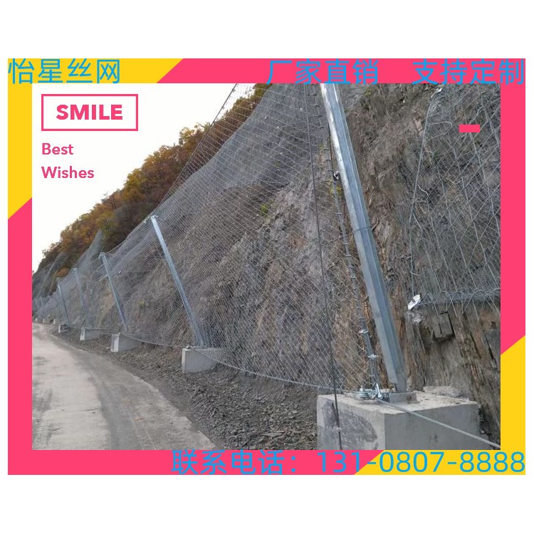 被動(dòng)環(huán)形邊坡防護(hù)網(wǎng)公路落石攔截安全網(wǎng)山體危巖滑坡菱形鋼絲繩網(wǎng)