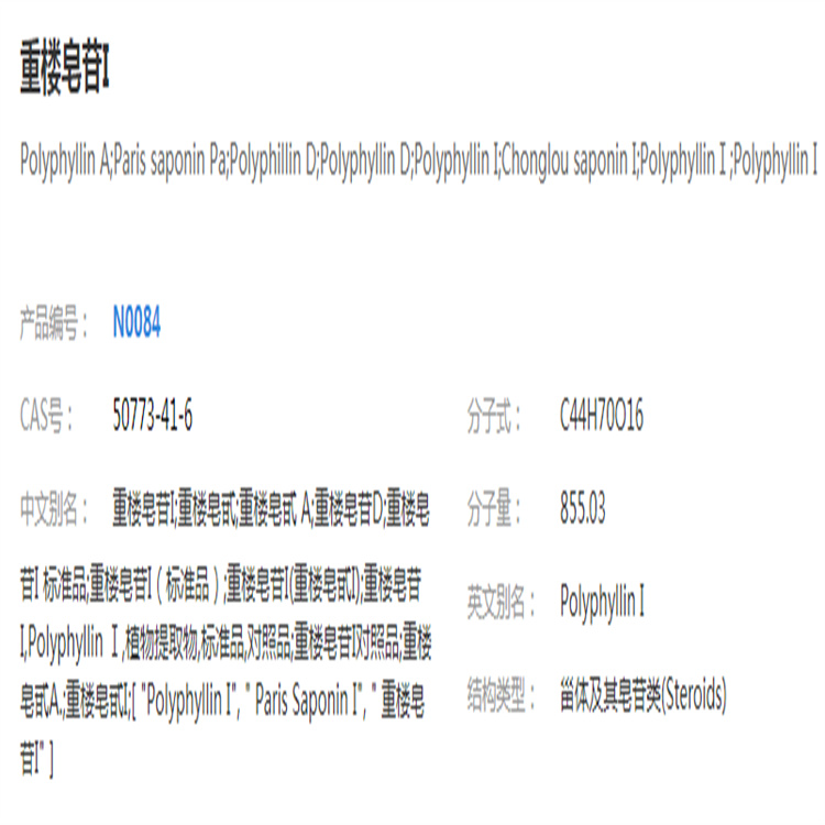 重樓皂苷I 50773-41-6 自制對(duì)照品 中檢院 純度高 科研專(zhuān)用