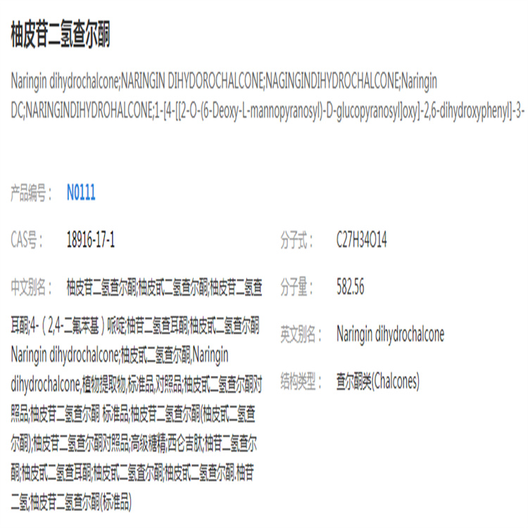 柚皮苷二氫查爾酮 對(duì)照品標(biāo)準(zhǔn)品 純度高 圖譜全 科研用品