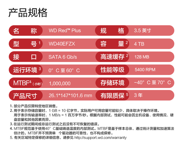 名稱:WD Red Plus 規(guī)格:3.5英寸
