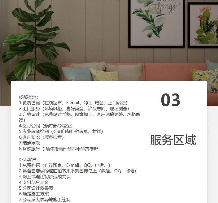 定下設計稿后,落實繪畫施工面積、費用預算報價、施工進度,根據(jù)工作安排和客戶要求確定繪制時間。 價格:商品的展示標價,具體的成交價格可能因商品參加活動等情況發(fā)生變化,也可能隨著購買數(shù)量不同或所選規(guī)格不同而發(fā)生變化,如用戶與商家線下達成協(xié)議,以線下協(xié)議的結算價格為準,如用戶線上完成購買,則*終以訂單結算頁價格為準。