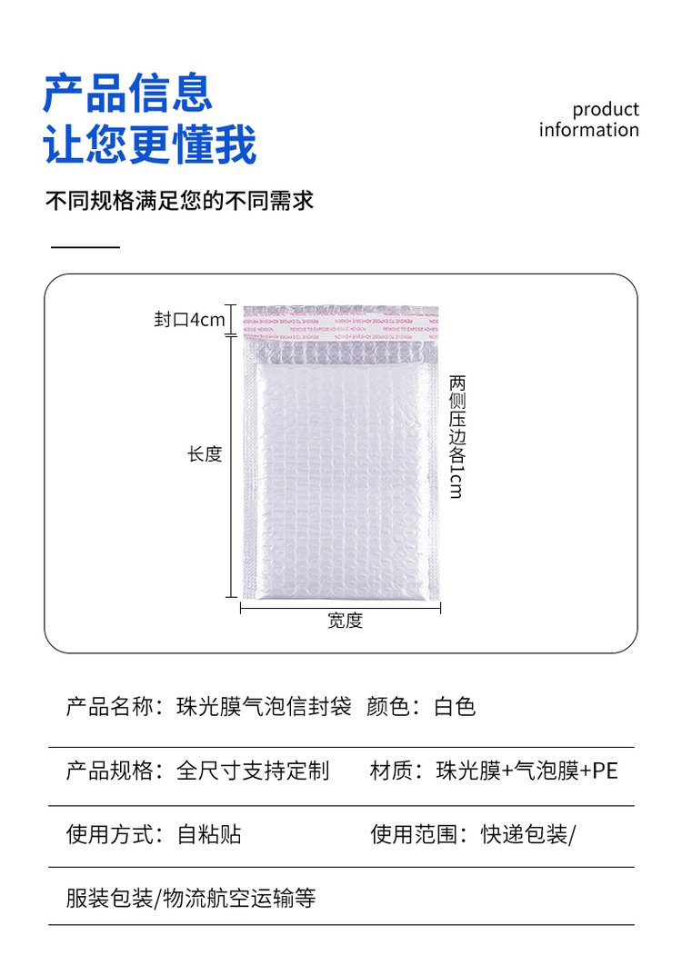 PE珠光膜氣泡信封袋 郵件快遞打包氣泡袋 商家可定制 防曬