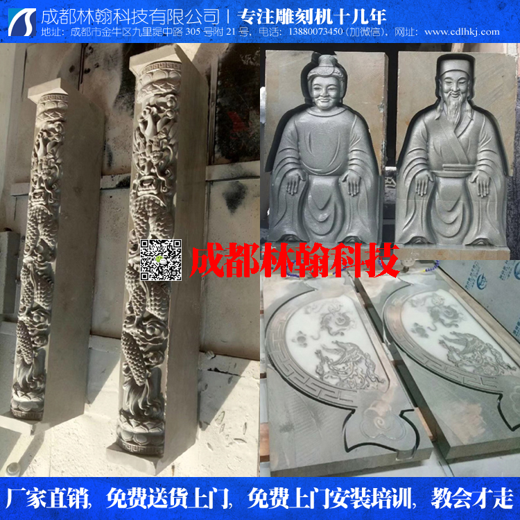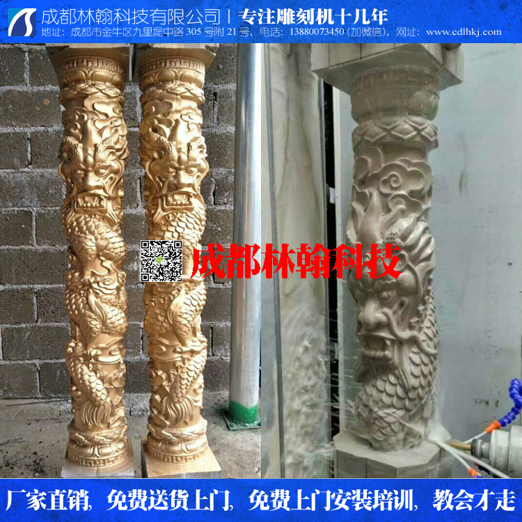 4、瓦溝仿形;石材立體圓雕(盤龍柱、花瓶、柱頭、小獅子等)。