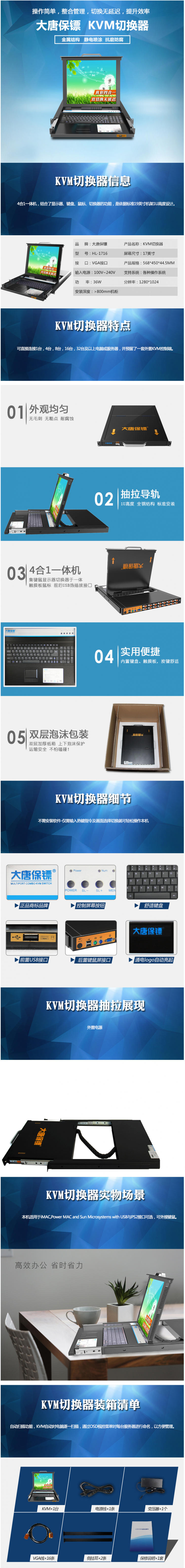 大唐保鏢 四川成都 分銷服務(wù)商 kvm切換器16口17英寸機(jī)架式 顯示屏 鼠標(biāo) 鍵盤 切換四合一 KVM HL-1716 可升級(jí)IP數(shù)字遠(yuǎn)程