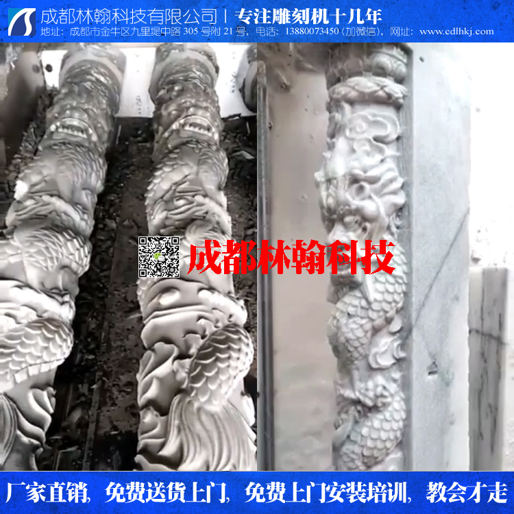 4、瓦溝仿形;石材立體圓雕(盤龍柱、花瓶、柱頭、小獅子等)。