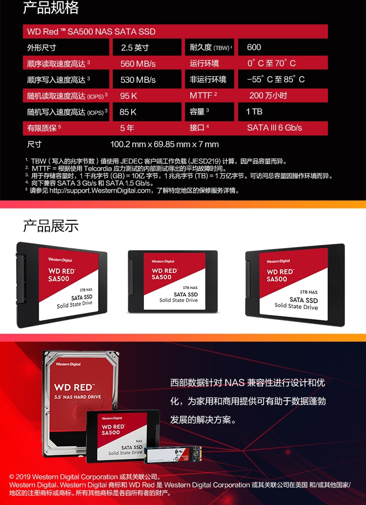 WD Red“SSD借助成熟的Western Digital m 3D NAND,專為NAS打造,可提供較高的SATA 性能,可提高您在家或辦公室的生產(chǎn)力和工作效率。