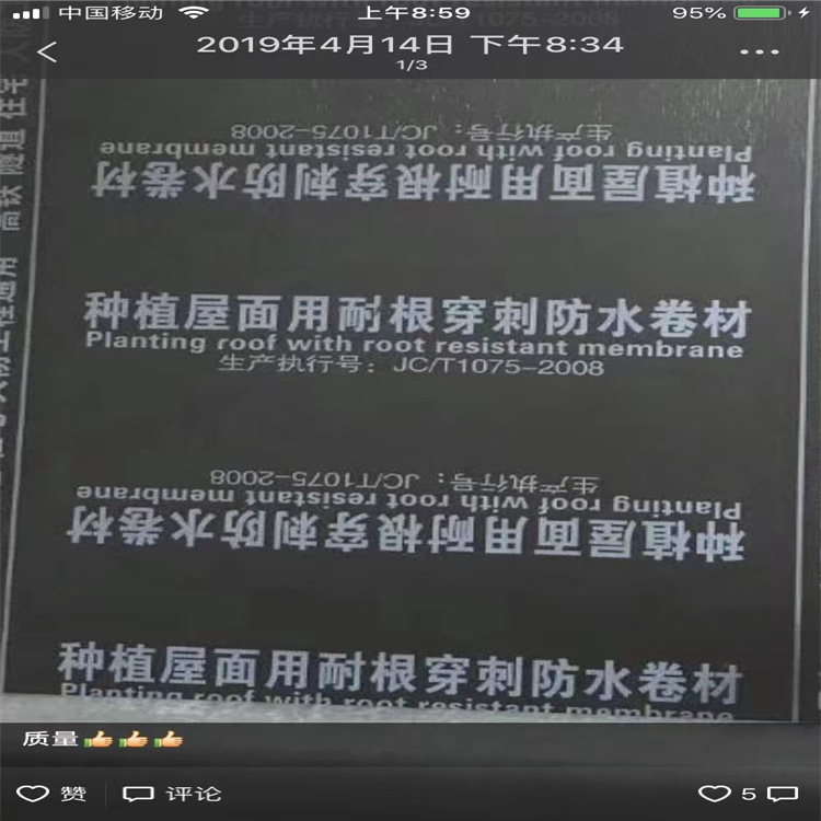 種植用耐根穿刺防水卷材通過(guò)對(duì)面層材料、改性瀝青體系的防根化處理,從根本上防止了植物根尖穿透防水層, 同時(shí)不影響植物的生長(zhǎng),材料抗根整體效果優(yōu)異。既有優(yōu)良的防水效果又可防止植物根須穿刺。施工工藝與普通防水卷材相同,工藝簡(jiǎn)單,易于操作。與抗根防水密封材料、排水板等配套材料形成完美的種植防水系統(tǒng)。