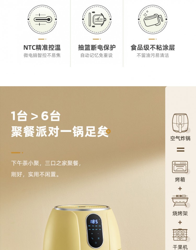 6.智能安全感應(yīng),抽出炸籃,自動(dòng)斷電,安全守護(hù),使用安心。