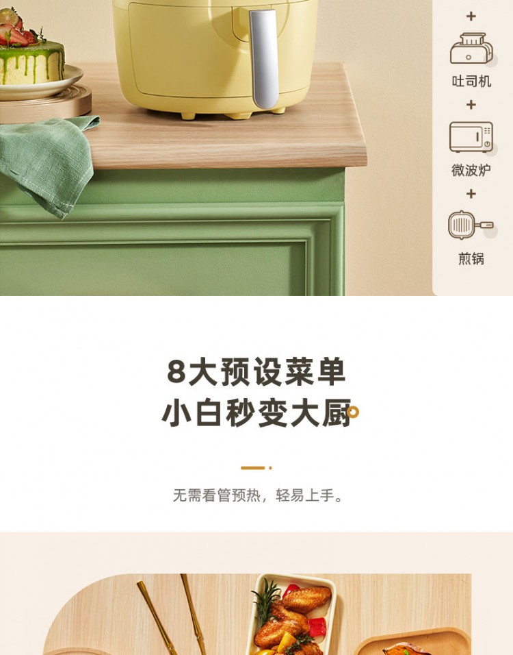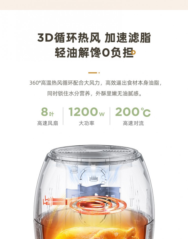 1.創(chuàng)新無油烹飪,高溫脫脂,輕松享瘦;