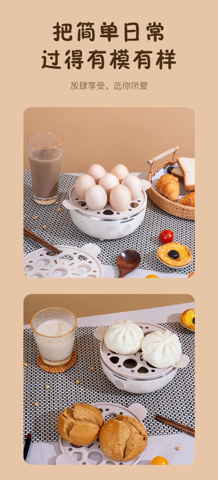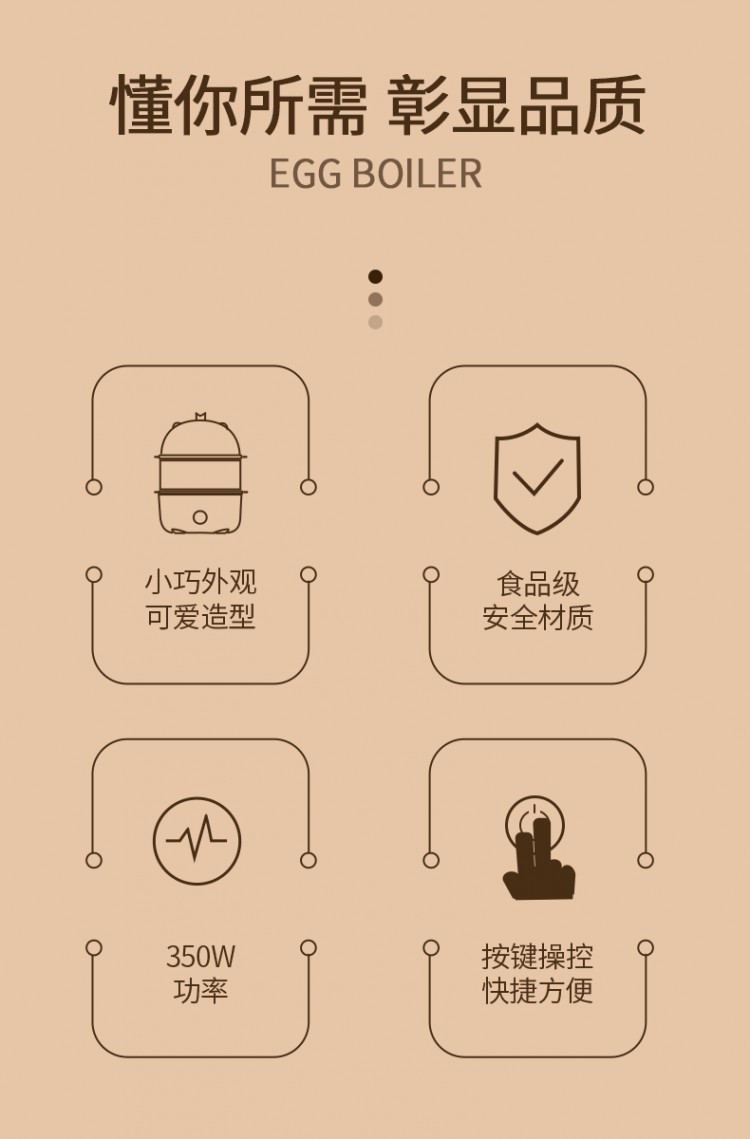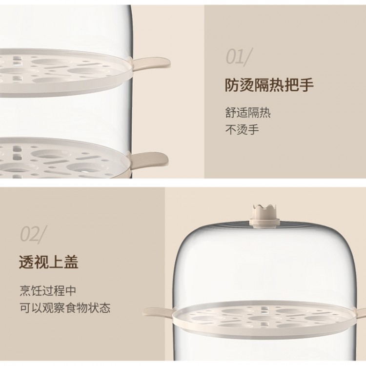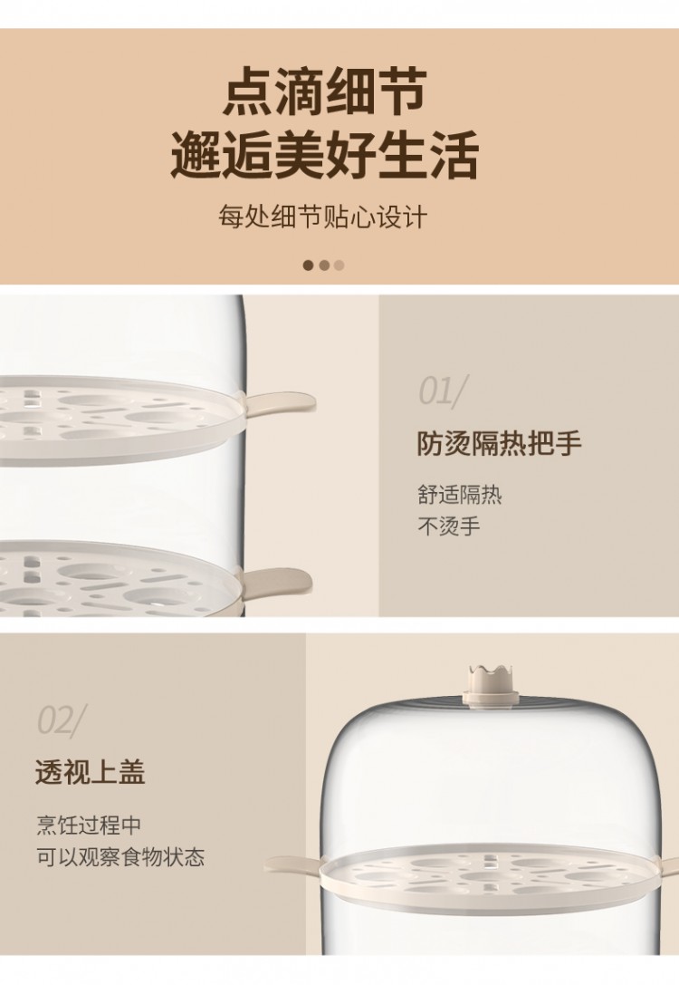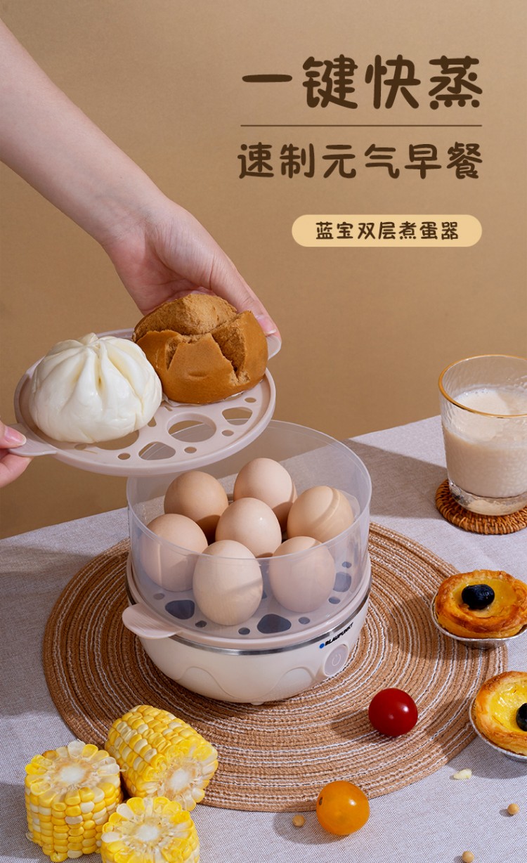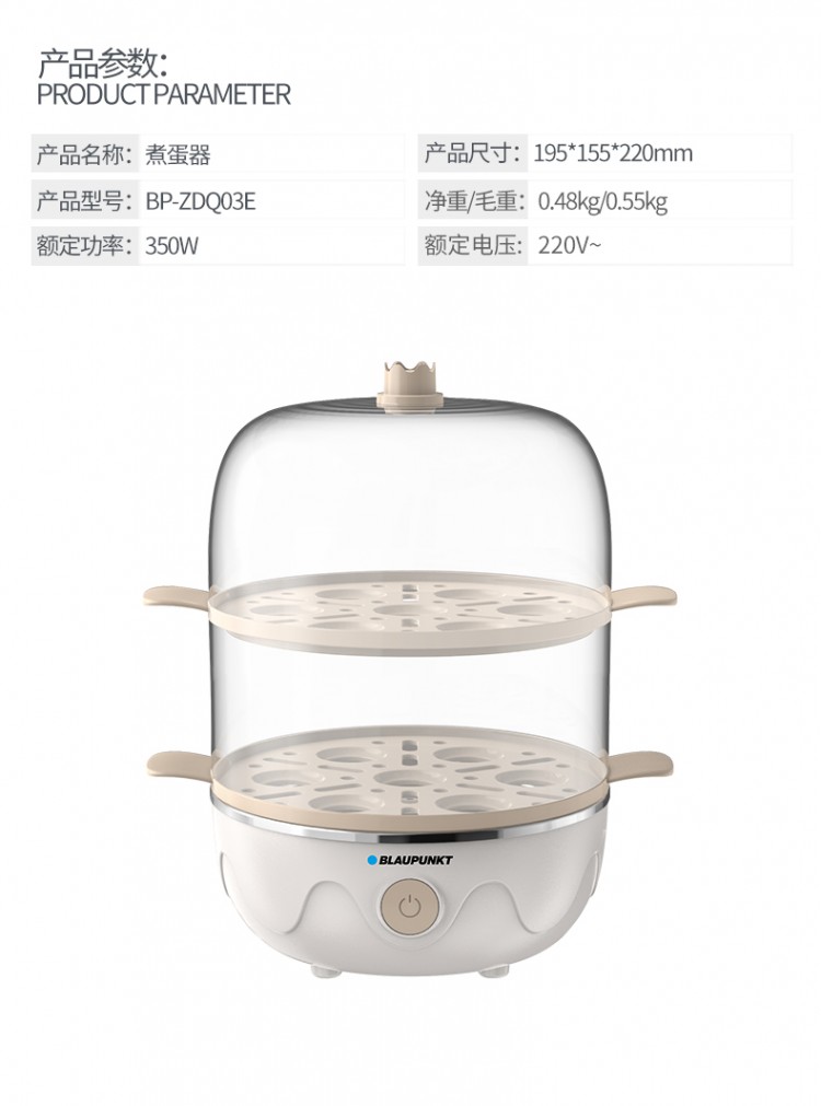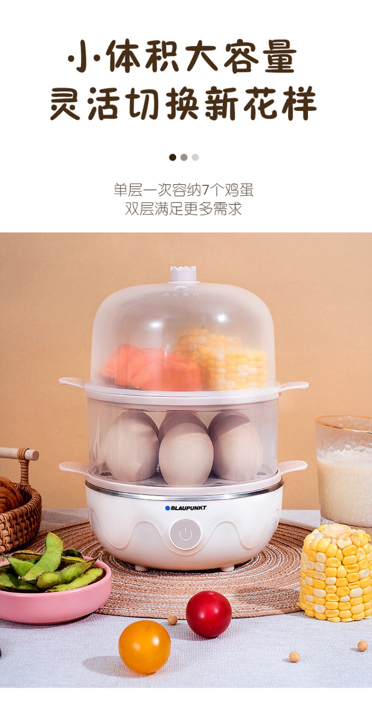 2.雙層大容量,14個(gè)雞蛋可一次完成蒸煮;