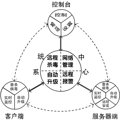 瑞星殺毒軟件網(wǎng)絡(luò)版創(chuàng)立并實(shí)現(xiàn)了“分布處理、集中控制”技術(shù),以系統(tǒng)中心、服務(wù)器、客戶端、控制臺(tái)為核心結(jié)構(gòu),成功地實(shí)現(xiàn)了遠(yuǎn)程自動(dòng)安裝、遠(yuǎn)程集中控管、遠(yuǎn)程病毒報(bào)警、遠(yuǎn)程卸載、遠(yuǎn)程配置、智能升級(jí)、查殺、日志管理、病毒溯源等功能,它將網(wǎng)絡(luò)中的所有計(jì)算機(jī)有機(jī)地聯(lián)系在一起,構(gòu)筑成協(xié)調(diào)一致的立體防毒體系。