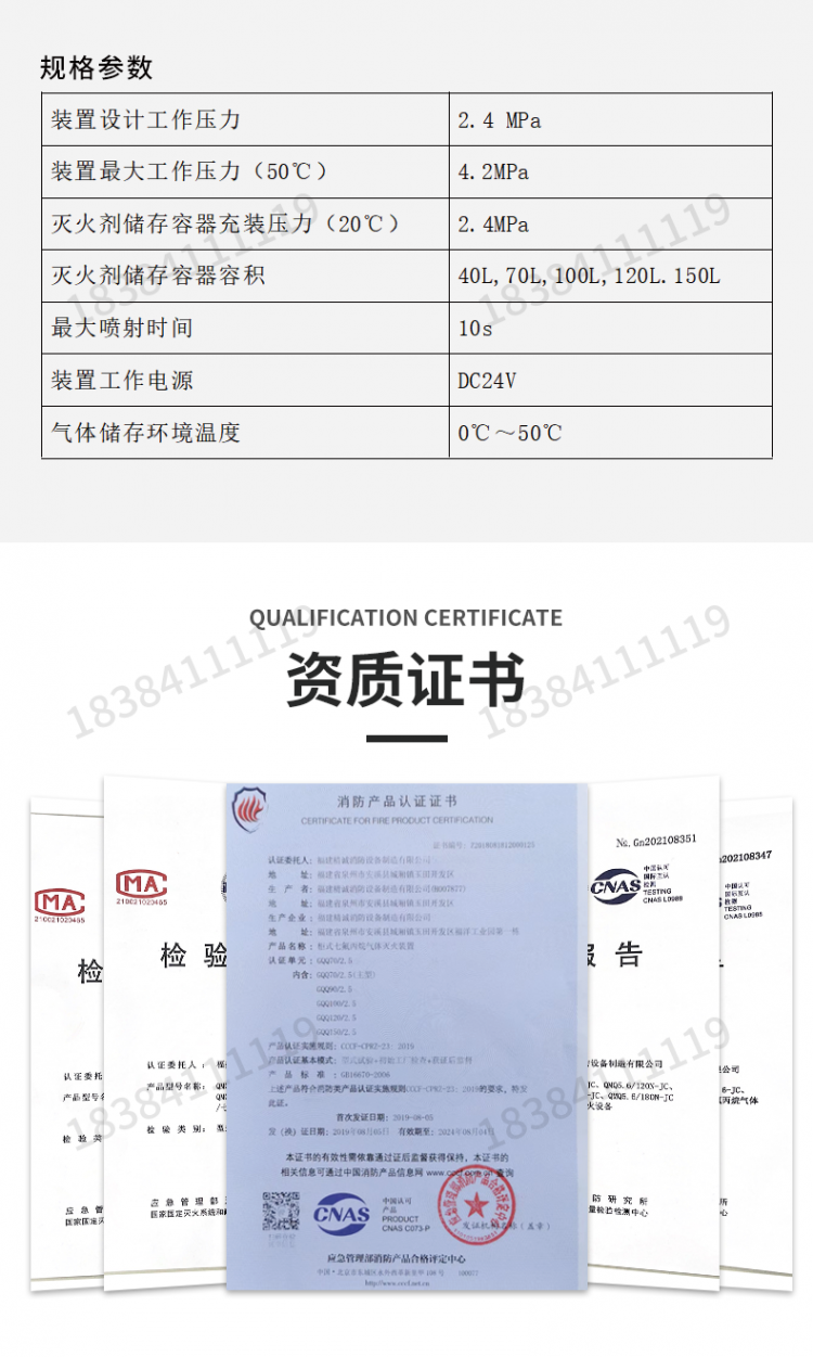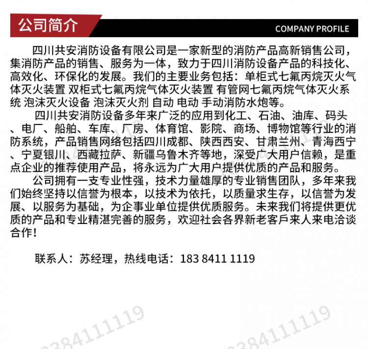 四川共安消防單雙柜式七氟丙烷氣體自動滅火裝置維修檢測充裝七氟丙烷滅火劑