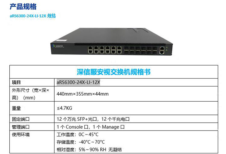 四川 成都 深信服 分銷商 深信服科技 SANGFOR 深信服aRS6300-24X-LI-12X 安視交換機 萬兆全光交換機