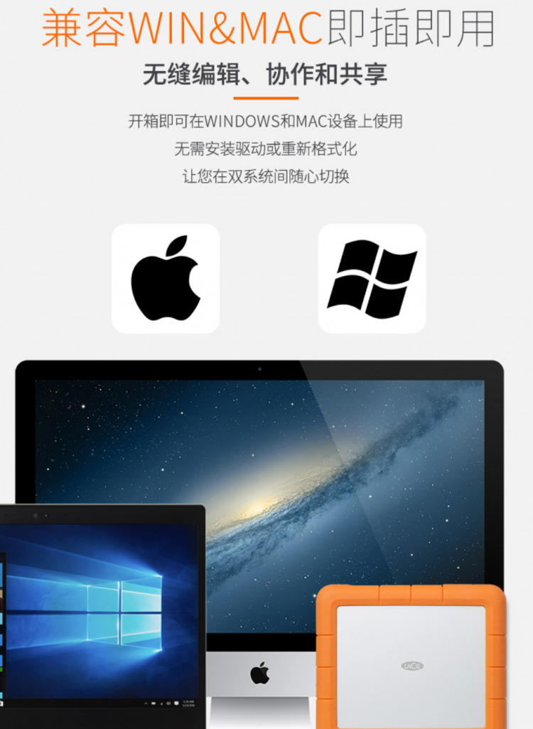 包裝清單LaCie Rugged SSD *1、USB-C (USB 3.1 10Gb/s) 數(shù)據(jù)線(xiàn) *1、快速安裝指南 *1