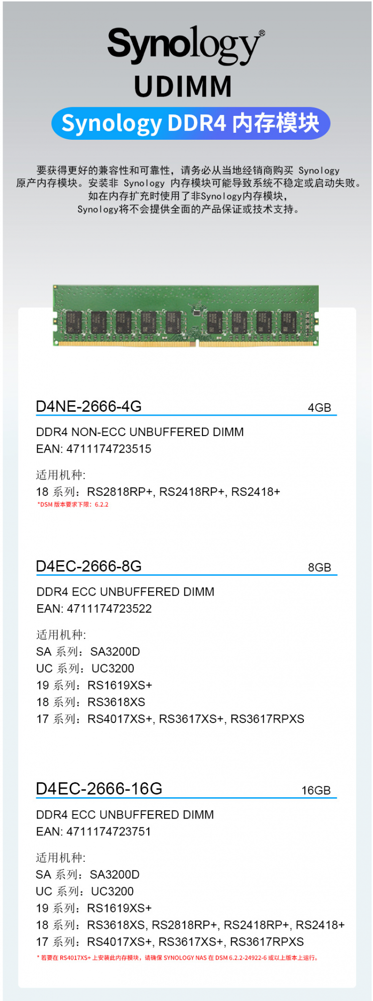 四川 成都 分銷商 群暉 Synology NAS專用內(nèi)存條原裝 DDR4系列UDIMM內(nèi)存模塊 提升NAS運(yùn)行速度 UDIMM D4EC-2666-8G