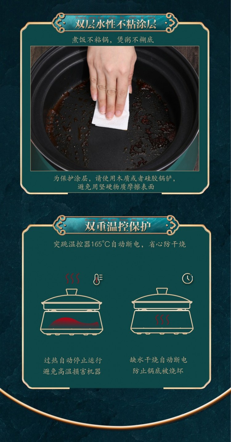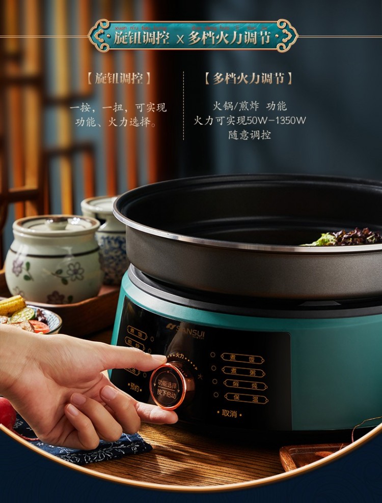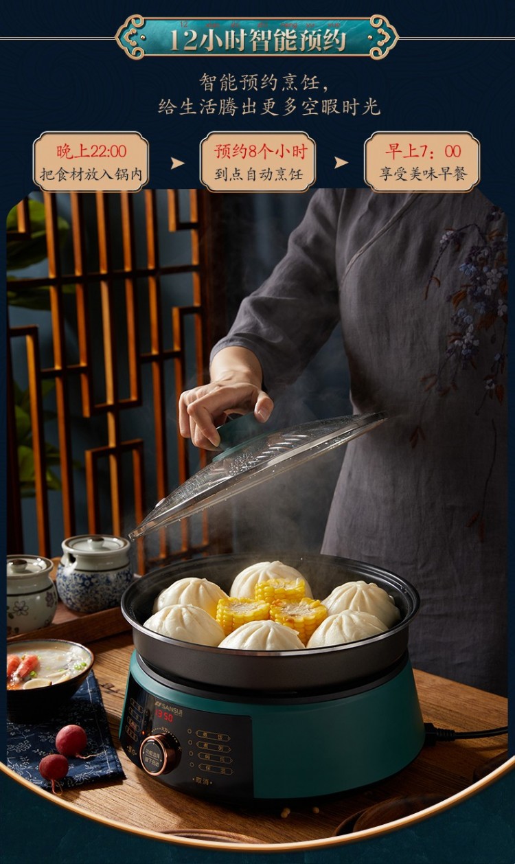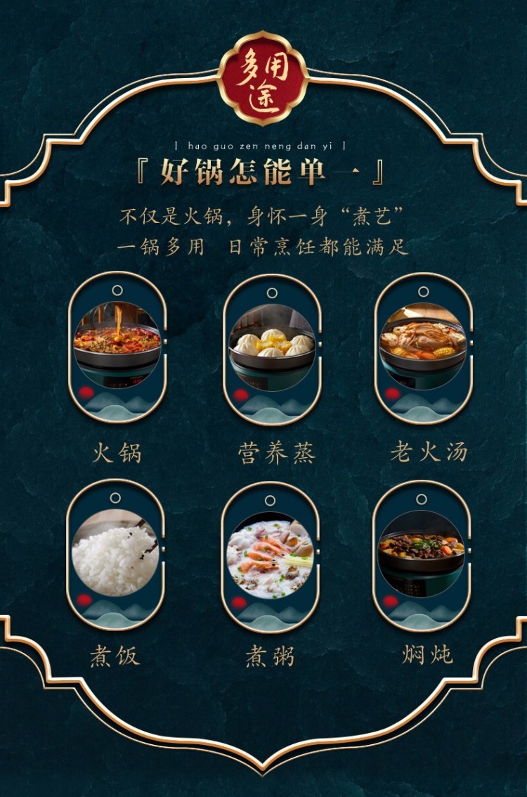 3.火鍋、煎炒、老火湯、營(yíng)養(yǎng)粥、煮飯、煮粥、燜燉、保溫等樣樣行;