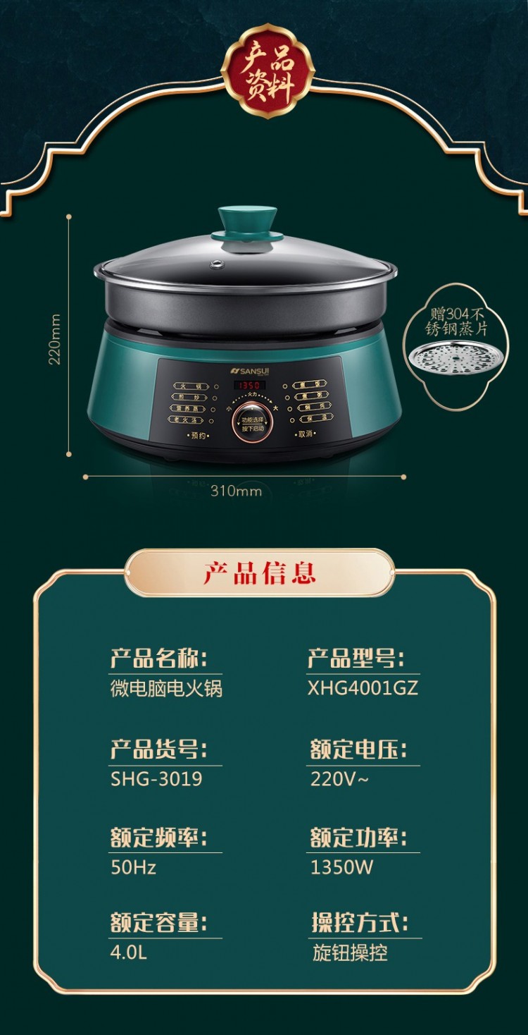1.分體式微電腦電火鍋,流行復(fù)古綠,時(shí)尚經(jīng)典;