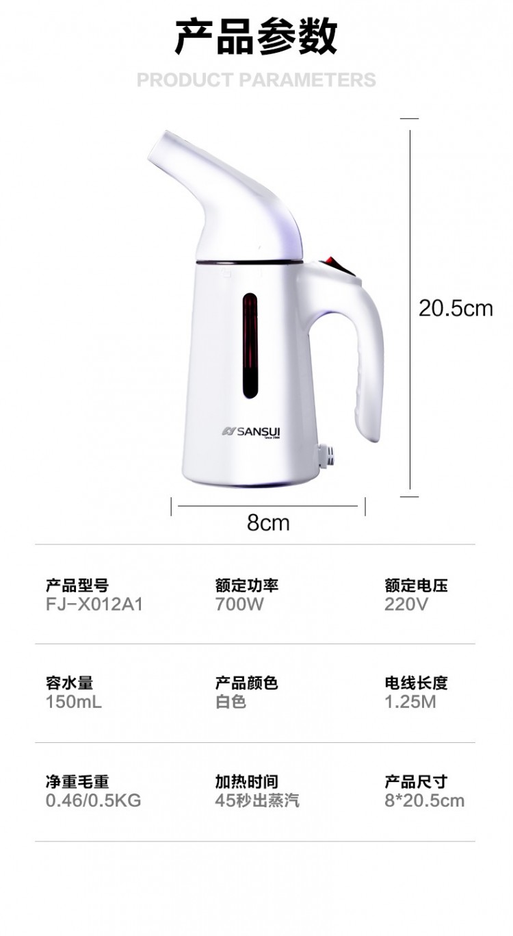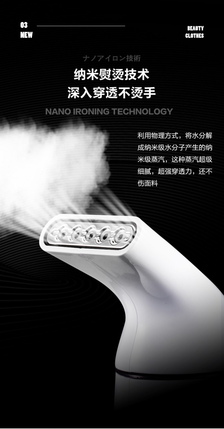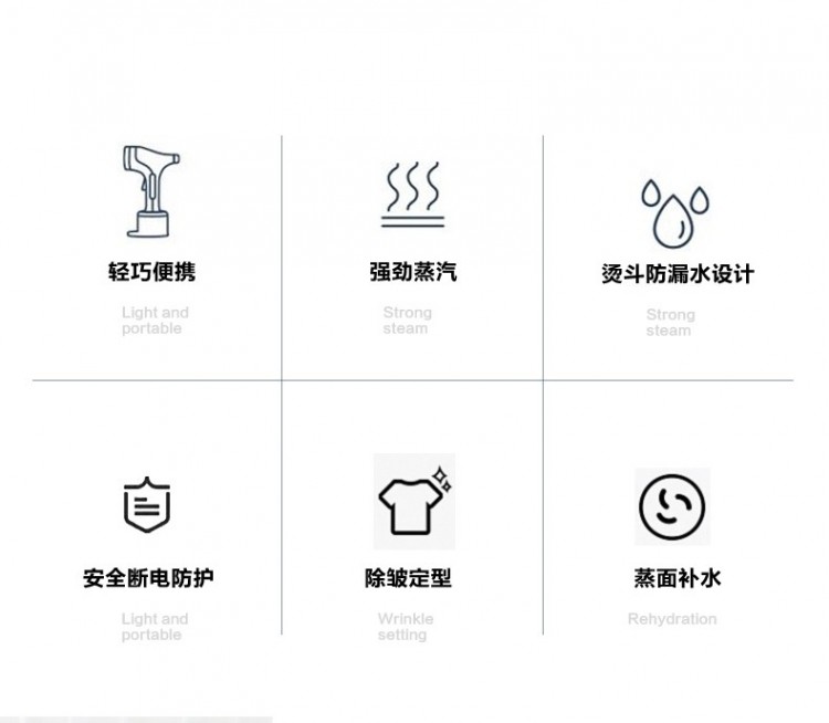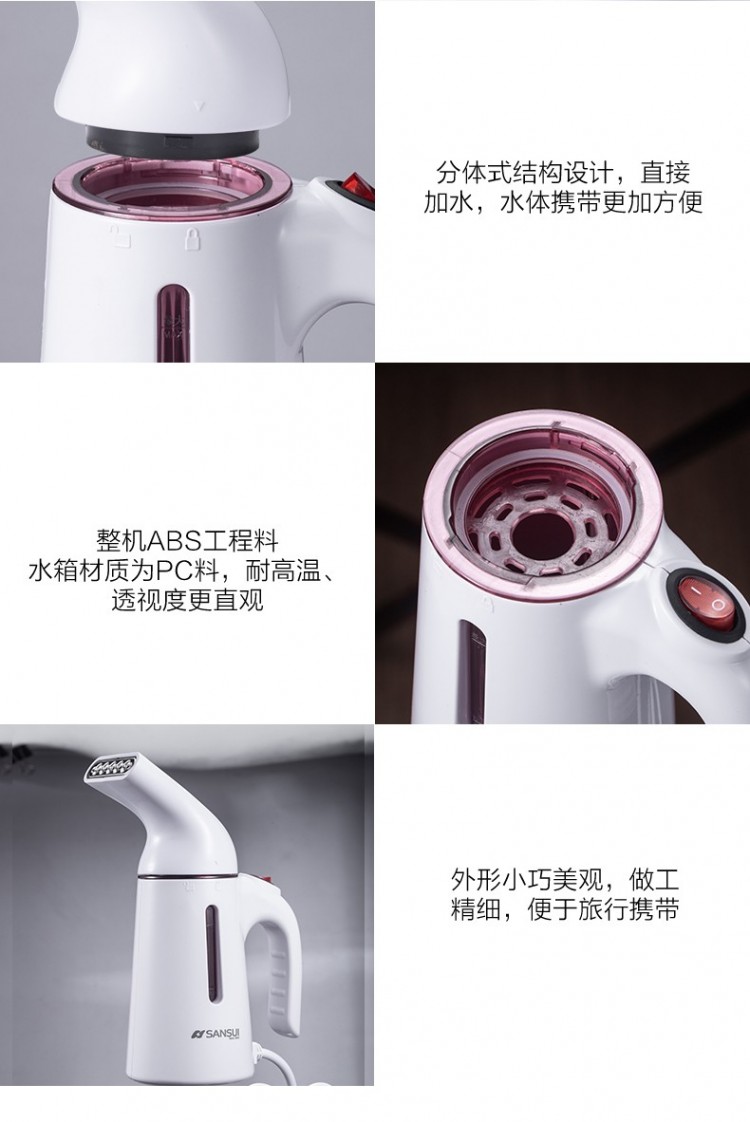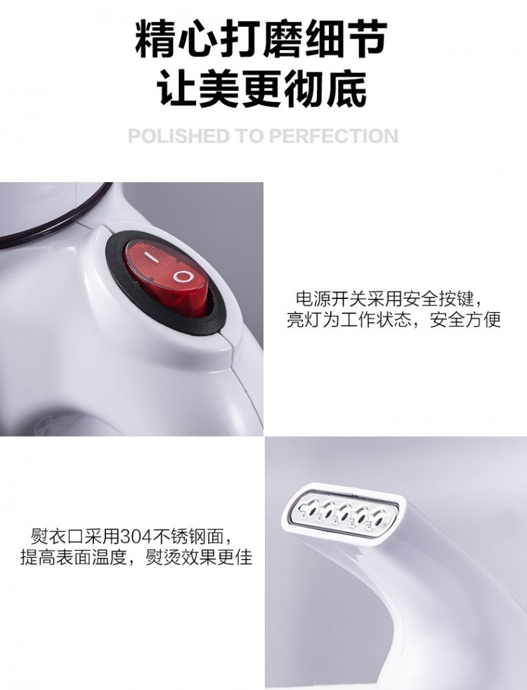 1.通電45秒出蒸汽、100度的蒸汽除了熨燙衣物除皺之外還可以消毒、殺菌、去異味;