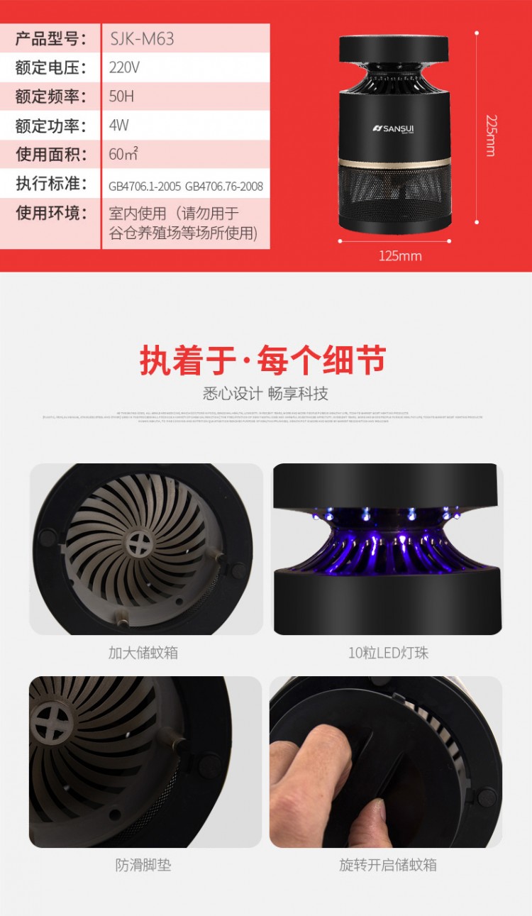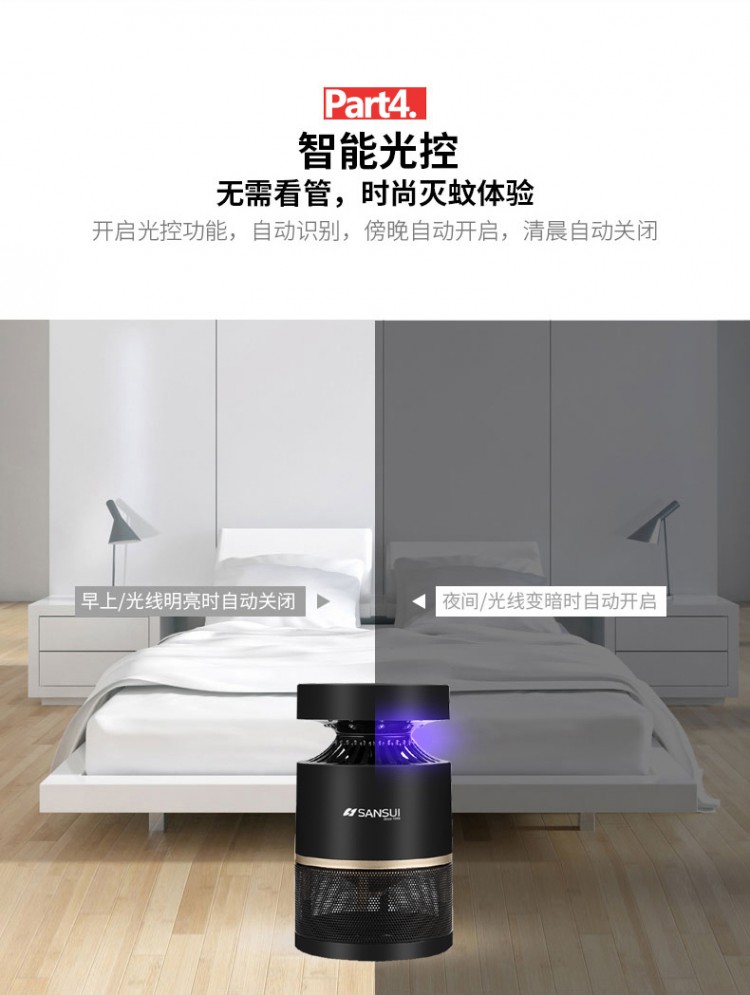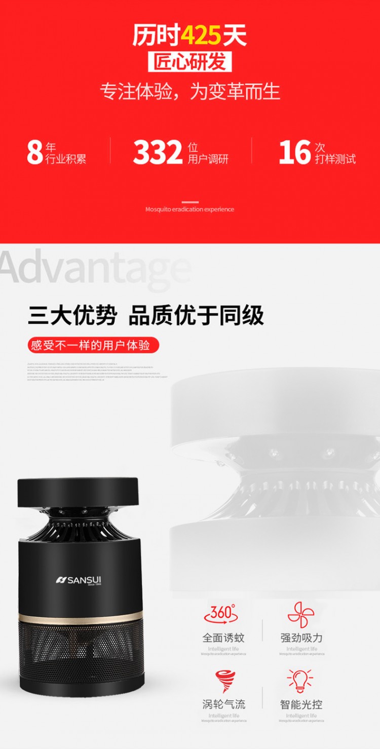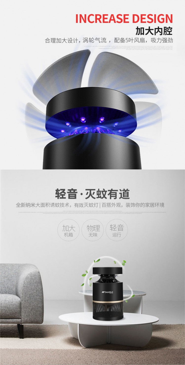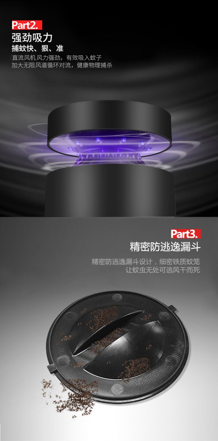 3.節(jié)能環(huán)保、360度誘蚊、防逃逸結(jié)構(gòu)。