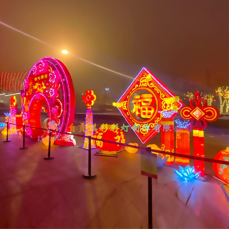 外表一般是色丁布或者八美緞,自貢彩燈公園里的花燈是全球高規(guī)格的花燈,使用的是優(yōu)質(zhì)色丁布裱糊材料,有些大型底盤使用優(yōu)質(zhì)八美緞材料裱糊,兩種材料外觀亮度和光澤度非常好,觸感潤滑。透光性非常好、光澤度能有真絲的效果,是彩燈制作公司不二選擇。