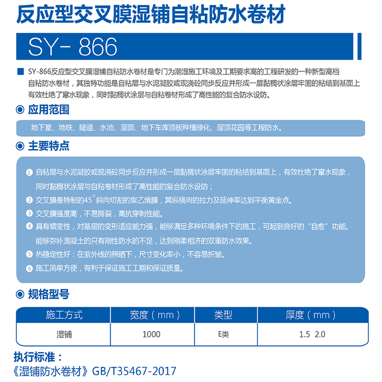 SY-866反應(yīng)型交叉膜濕鋪?zhàn)哉撤浪聿?北新防水