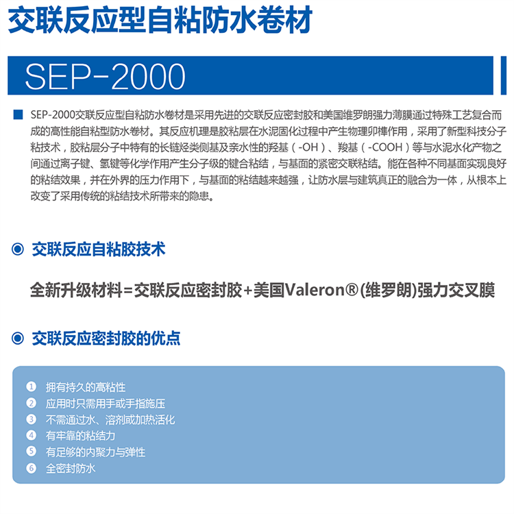 SEP-2000交聯(lián)反應(yīng)型自粘防水卷材 噴涂防水涂料